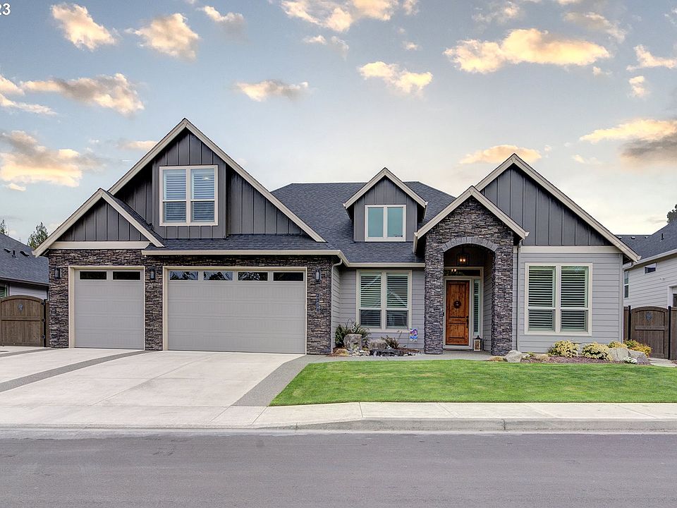 BEAUTIFUL Customized Home in the Meadows at Whipple Creek gated community, built for the Parade of Homes by top notch award winning builder Cascade West. With its high-end finishes and thoughtful design, it is sure to impress anyone who appreciates fine craftsmanship and attention to detail. The spacious kitchen, complete with two Kitchen Aid dishwashers, an extra-wide refrigerator, and large pantry, is perfect for those who love to entertain guests. The formal dining room and butler's pantry add an elegant touch, while the custom millwork and cabinetry throughout the home add character and charm. The central stone fireplace, with its wooden hearth and lighted built-ins, is a stunning centerpiece of the great room. The tall ceilings and speakers throughout the great room and office make this space feel open and inviting. The custom remote control blinds add an extra level of convenience and sophistication. Upstairs, the large bonus room and sitting area offer plenty of additional space for relaxing or entertaining as well a walk in additional storage space in the attic. Outside, the low-maintenance yard with its XL covered living area with speakers and Koi pond provide a tranquil retreat. The RV hookup and parking on the side of the house offer additional luxury convenience with a 220 outlet and a hot and cold spigot. Finally, the spacious 3-car garage with epoxy flooring and electric car hookup make this home both practical and luxurious. Overall, this home is a must-see for anyone in search of a truly beautiful and customized property.