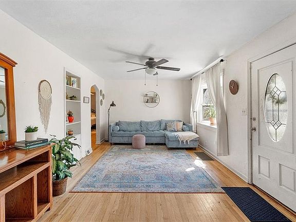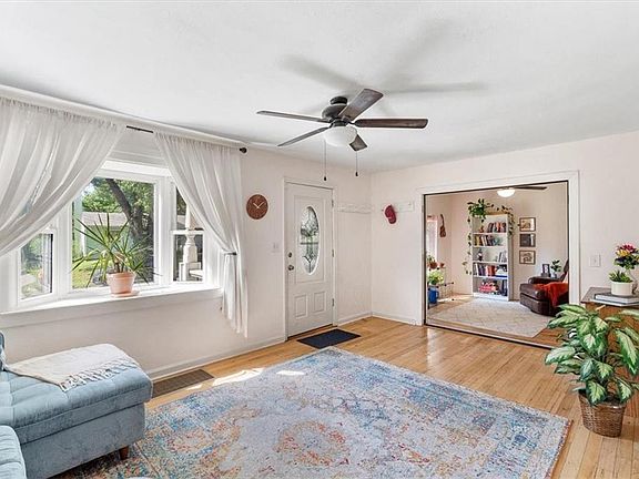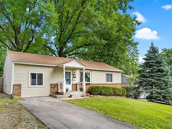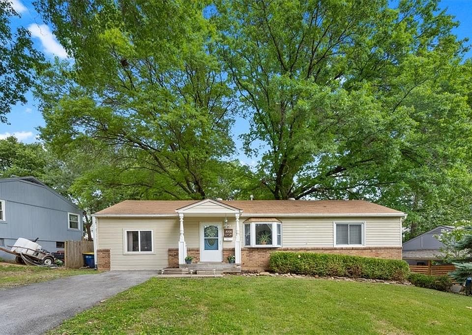 Welcome to this delightful ranch home, boasting beautiful hardwood floors and a sunroom that exudes charm. Step into the inviting living room, which showcases tasteful built-in shelves and a generously-sized front-facing window box, saturating the space with an abundance of natural light. Adjacent to the living room is a well-appointed kitchen featuring custom cabinets, seamlessly flowing into a formal dining area and family room. Discover two cozy bedrooms and a fully updated bathroom, providing comfort and convenience. For moments of tranquility, indulge in the serene sunroom with its vaulted ceiling and convenient access to the deck, perfect for relaxation. Outside, the expansive backyard is adorned with mature trees, while a storage shed provides additional practicality. Situated in the NKC School District. Embrace the peaceful ambiance of this charming neighborhood, and make this house your home today!