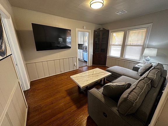 This home is fully furnished with two queen beds and a couch that will sleep two. The third bedroom has been converted to a study but can be converted back to a bedroom if needed. Most everything in the house is new including beds, couch, refrigerator, dishwasher, all kitchen utensils, kitchen cabinets and kitchen table along with a 65 inch TV. There is a stacked washer and dryer. Central heat and air. Large fenced back yard. Additional building outside can be used for storage, game room, man cave, etc. Great neighborhood and a great location. Owner is a Licensed Real Estate Agent 30 day minimum lease.