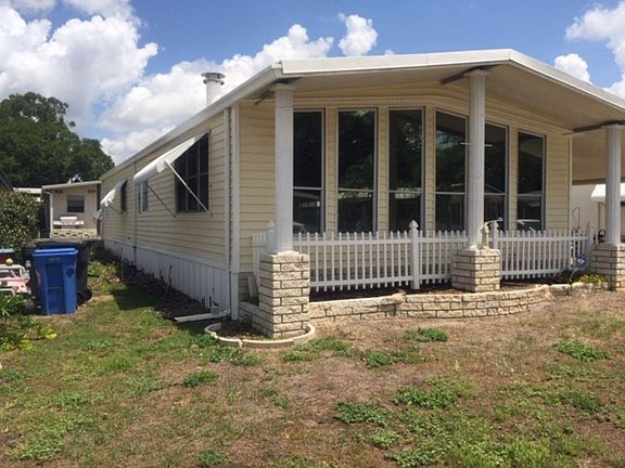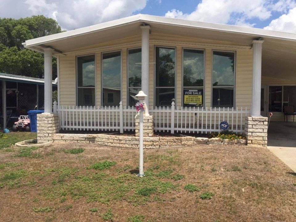 Looking for a Winter Home or looking to retire to Florida, or just want to down size, this large 2 bedroom, 2 bath home in Valrico just may be what you are looking for. This home has a spacious living room with fire place, has updated laminate flooring and no carpet. The home has an entrance to the living room as well as another entrance into the kitchen area. The home is sold with all the existing appliance, including stove with microwave above, double door refrigerator, dishwasher, and indoor washer & dryer. The kitchen has nice laminate counter tops, with the dining room near the kitchen. There are several built-in shelving throughout the home. The Laundry room is also off the kitchen and across from the 2nd bedroom and attached 2nd bath. The main bedroom and ensuite is across the back of the home and provides a walk-in closet for storage. Both bathroom have been updated with tall toilets, and tall vanities. Each bathroom has walk-in showers. The ensuite off the main bedroom is large and even has a separate dressing area. The home has a rubber roof to provide many years of serviceability. The front of the home has large windows that reach to the top of the home, giving it a very nice curb appeal. The carport provides space for at least two vehicle. Behind the driveway is a very large sunroom with windows that open to proved a nice place of refuge during those winter months. It even has a wall mounted AC unit for to keep it cool in the summer months. Located in the age qualified community of Featherock. Monthly fee is $780. This home is priced to sell, so be the first to schedule a showing of this home.