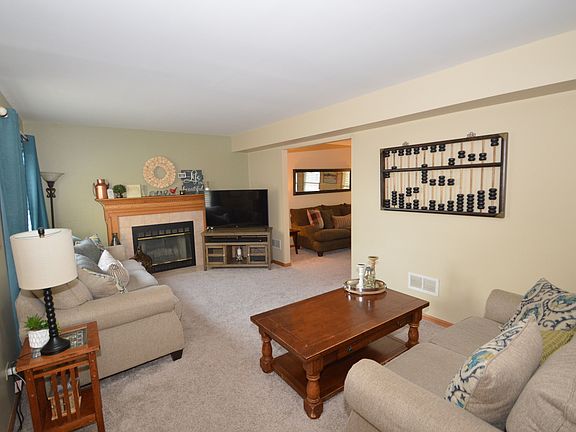 Updated home with a premium lot. View of the riverwalk and river. Home boasts 1,900 square ft. plus an additional 600 sq. ft of finished basement area. Basement includes a beautiful bar, 1/2 bath and rec room. Family room with fireplace opens to kitchen and living room. 2 Car attached garage. Huge Master suite with walk-in closets and full bath with double sinks. 2 full & 2 half baths. Walking distance to grade school & junior high.