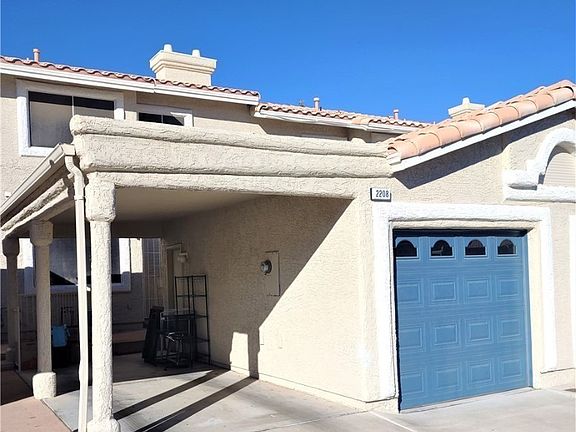 Nestled within a serene, park-like oasis, this captivating 3 bd, 2.5 bath townhome exudes tranquility and charm. The two-story residence boasts a cozy fireplace that welcomes warm gatherings, and a private balcony off the primary bedroom for moments of peaceful reflection under the stars. Large open eat-in kitchen, sports Stainless Steel Viking Gas Stove, French Door Fridge and Dishwasher. Plantation Shutters and decorator stained-glass windows dot the interior. New Vinyl Plank flooring in all bedrooms with ceiling fans, and a newer water heater. A one-car garage paired with an attached single carport ensures ample parking convenience in this idyllic community setting. enjoy leisurely swims in the inviting community pool as you unwind amidst nature's embrace right at your doorstep. Close to Town Center, River, Lake, Entertainment & Casinos. Come home to Laughlin!