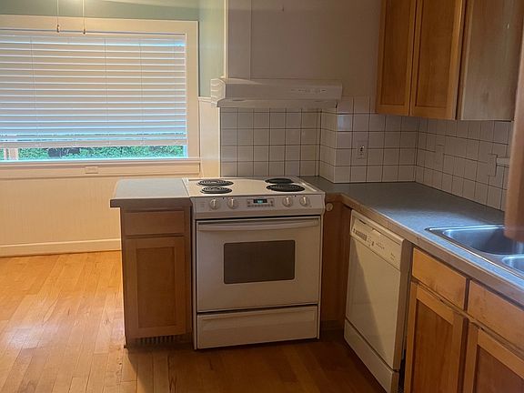 This rental is for the upper two floors only of this charming Multnomah Village bungalow. Spacious, and bright living room featuring new flooring, and a wood stove. Kitchen has a natural lit, and cozy dining nook. The kitchen area has hardwood floors, and comes with a stove, fridge, microwave, and dishwasher. The kitchen is open and spacious with an abundance of cabinets and storage space. The two upper level bedrooms are carpeted, and have a view of the large back yard. There is an additional carpeted office on the main floor that could also be used as a bedroom as well.