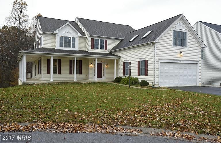 Must see custom colonial w 5 BR, 4.5 BA, wrap-around porch, 2-car garage, hardwood floors, ceramic tile, Corian counters, crown molding, chair rail. MBR w sitting area, walk-in closet & deluxe MBA. 1st fl BR doubles as office. Gas FP. 2nd level bonus room. Screened-in deck, mud room & much more. Walk-out basement w full BA, room for storage & ready to finish. Backs to state park. No HOA! Warranty.
