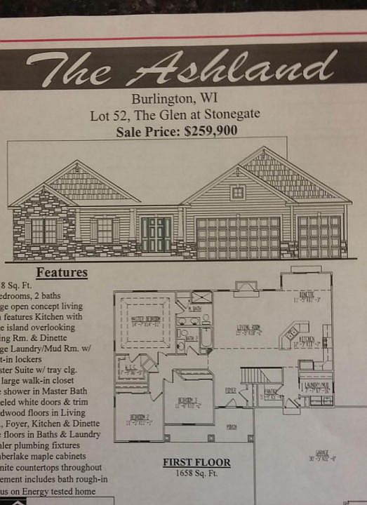 New construction. ''The Ashland'' ranch home with 3 car attached garage. 3 bedroom, 2 bath with large open concept living area. Master suite with tray ceiling and large walk in closet. Hardwood flooring in living room, foyer, kitchen and dinette. Tile flooring in baths and laundry room along with Kohler plumbing fixtures. Granite counter tops throughout. Basement includes bath rough-in.
