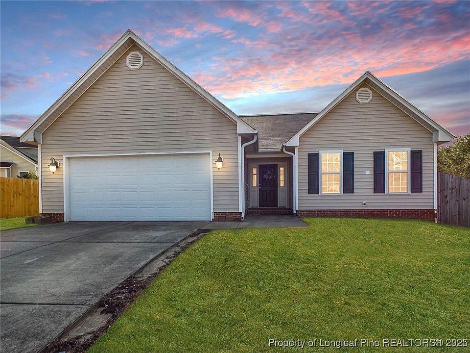 Beautifully maintained home in quiet cul-de-sac of desirable neighborhood. Home offers large great room with gas log fireplace, eat in kitchen with lots of cabinets and counterspace, 3 large bedrooms all on main level to include nice size master with glamour bath featuring garden tub, separate shower and dual vanity. Double garage has plenty of room for vehicles, toys and storage. Huge fenced in backyard with patio is ready to entertain all of your friends and family. Convenient location to schools, shopping, dining and so much more. Easy commute to Fort Liberty, All American Expressway, I295 and I95.