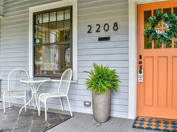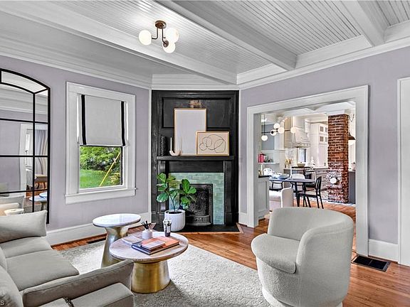 Built in 1919, this home combines the elegance of the past with modern day living. Open floor plan with cozy living room complete with beautiful fireplace and gas logs, dining area with built in buffet and wet bar sink, updated kitchen, gas range with new cabinets, quartz counters, sparkling tile, and island. Coffiered ceilings and spectacular moldings. Main level features two guest rooms, full bath and laundry. Spacious upper level primary suite with walk in shower and double vanity. Off street parking, two beautiful decks, firepit and beautifully landscaped fenced yard. Bedroom Fireplace is Decorative Only.