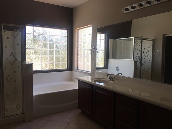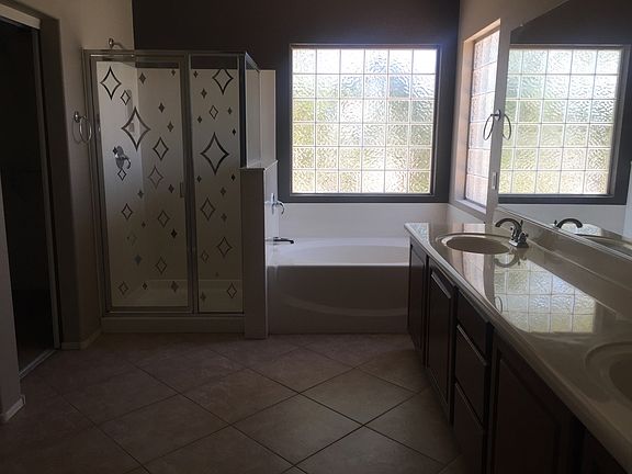 This is the one, beautiful Home in South Mountain with sparkling pool and Brand NEW AC units! Entry opens with neutral tile in all the right places and new interior paint throughout. Kitchen boasts cherry kitchen cabinets with roped crown, stainless steel appliances, breakfast bar overlooking living room & separate dining area and half bath complete the lower level. Upstairs are 3 BRs, full hall bath and a spacious loft area. The double door Master offers spacious ensuite with dual sinks, separate shower/tub and walk-in closet. The backyard with lush landscaping, pool and additional privacy add value and appeal to this wonderful property!