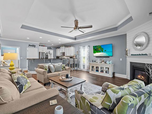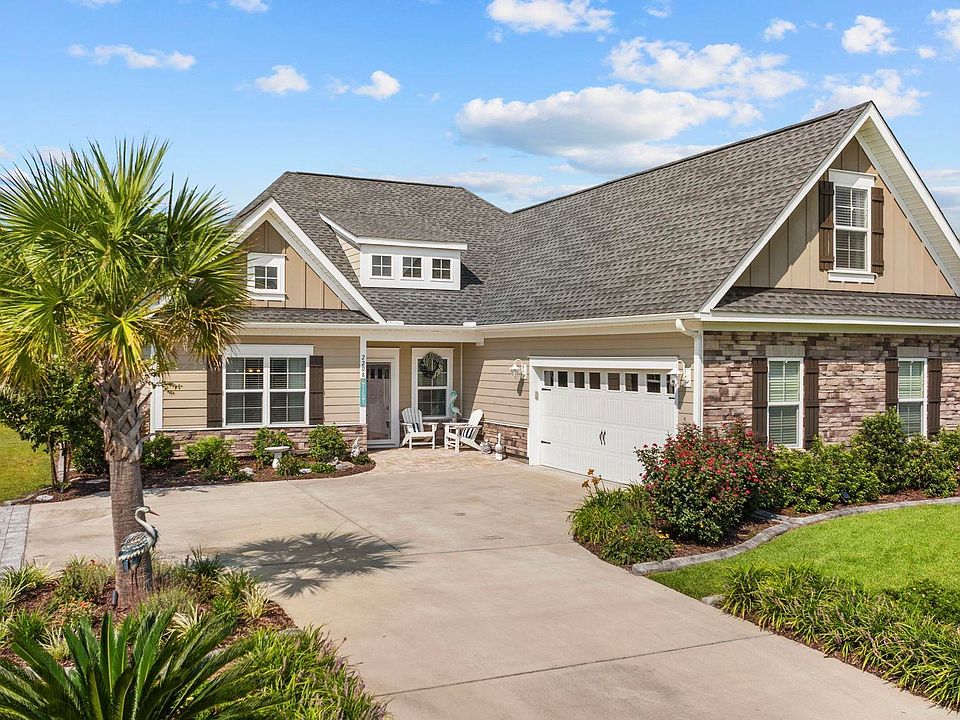 Welcome to your luxurious oasis nestled along one of the Finger Lakes in the luxury community of Wild Wing Plantation.   This exquisite custom built 3-bedroom, 2-bathroom home is a haven of southern elegance and comfort, where every detail has been meticulously designed to create a harmonious blend of serenity and sophistication. As you step onto the property notice the extended driveway is flanked by impeccable landscaping, making a grand entrance to your dream home, featuring a side load garage Inside, the heart of the home boasts an open Kitchen & Family Room concept, perfect for entertaining or simply enjoying the company of loved ones. Relaxing by the  Gas fireplace has a touch of shiplap for that Welcome to the Beach feel.  The formal Dining Room, adorned with a coffer ceiling, adds an air of refinement to every meal. For those seeking a bit more privacy, a Large Bonus Room awaits on the 2nd floor, offering endless possibilities as a media room, home office, bedroom or personal sanctuary. The primary first floor bedroom has tray ceilings for that large open feel    This home is not just about convenience; it's about luxury living. The Beachwood floor plan has been upgraded to perfection. Enjoy the extended, screened-in porch and make every moment spent outdoors a pleasure. Imagine evenings on your paved extended patio, savoring the water view in complete tranquility with custom shades, ceramic tile, and a touch of perfection.  The finishing touches of this home are nothing short of breathtaking. Wainscoting, crown molding, and a hint of shiplap add charm and character to every room. The kitchen features a gas range and top-of-the-line appliances, a haven for the culinary enthusiast. A sound system fills the air with your favorite tunes, setting the perfect ambiance for any occasion. Practicality meets beauty with LVP flooring, ensuring durability and ease of maintenance.  Wild Wing Plantation, is part of the Green Smart Neighborhoods initiative, showcasing a commitment to sustainable living. The amenities here are unparalleled, with 2 golf courses, a clubhouse featuring a golfer's pub, and a pool complex with 3 pools, a splash zone, and water slide. Enjoy TV, exercise, and reading rooms, as well as a picnic area, playground, basketball and tennis courts, and 180 acres of pristine lakes. For those with a penchant for adventure, onsite boat and RV storage ensures your toys are secure and ready for your next expedition. Life at Wild Wing Plantation is a seamless blend of luxury and leisure, and this Beachwood floor plan home is your key to unlock it all. Don't miss your chance to experience the epitome of upscale living. Make this remarkable residence your forever sanctuary and discover the unparalleled lifestyle this home  has to offer. Welcome home to the life of your dreams!