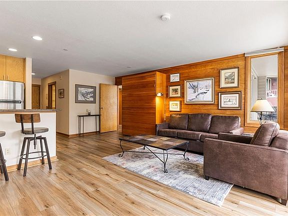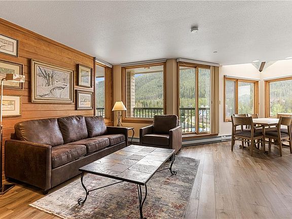 Best one bedroom location in Keystone's Lakeside Village. Top floor end unit with spectacular views overlooking Keystone Lake to the slopes of Keystone Mountain. 180 degree views from the Continental Divide to the Ten Mile Range. Upgraded with LVT flooring, solid surface counters, stainless appliances. Property features a Murphy bed and 1.75 baths. Skylight. Large combined deck with access from living room and bedroom. Use of Keystone Lodge pool, hot tub, steam, sauna, and exercise room.