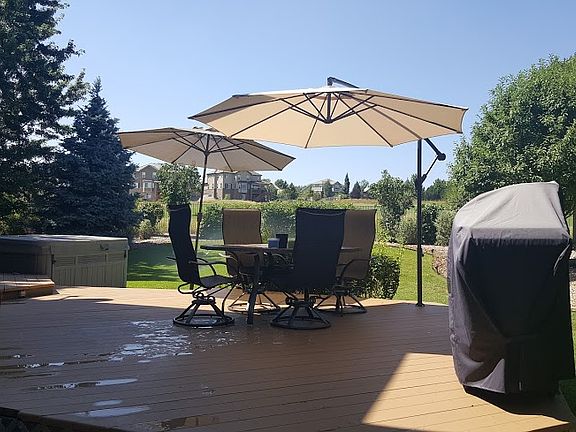 Full remodel in 2013!! Gourmet kitchen with slab granite, tumbled stone backsplash, 42" cabinets and newer Kitchen Aid appliances. The spacious master suite boasts vaulted ceiling, chair-rail, 5-piece bath with stunning custom tile shower, floors and counters with large walk-in closet. The professionally finished basement offers a bedroom, 3/4 bath, custom wet bar, wine storage and great theatre area. The large deck, stamped concrete patio and walkway greet you in the amazing backyard with mature professional landscaping, backing to the 13th fairway on to the Saddle Rock Golf course. Other features include: loft w/built-in desk & shelves, formal living & dining rooms, extensive hardwood flooring, private cul-de-sac location and much more!