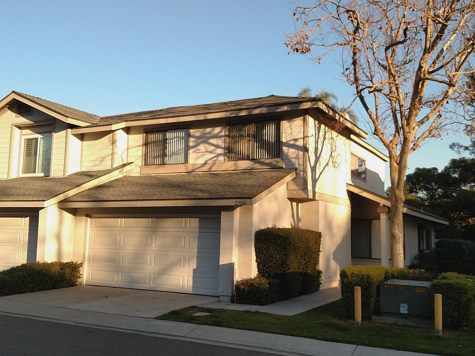 VERY SPACIOUS LAKE FOREST 'GRANDVIEW' 3 BDRM, 2.5 BATH TOWNHOME, WITH GREAT PRIVATE END-UNIT LOCATION WITH ONLY ONE ATTCHED WALL AND GREAT VIEW OF SURROUNDING HILLS & CITY LIGHTS AT NIGHT! ALL MAIN LEVEL FLOORS ARE TILE INCLUDING: ENTRY, LIVING RM WITH BRICK FIREPLACE, GUEST BATH, FORMAL DINING RM WITH HIGH-LIGHT CEILINGS, KITCHEN EAT-IN AREA OR FAMILY RM/BKFST BAR AND GORMET KITCHEN WITH GARDEN WINDOW AND NEWER APPLIANCES. ALSO, DOUBLE ENTRY CLOSET WITH LOTS OF STORAGE UNDER SKY-LIT STAIRWELL, FULL GUEST BATH UPSTAIRS, A/C & BDRMS WITH CEILING FANS & MIRRORED WARDROBES, LARGE HALLWAY LIEN CLOSET, COVERED REAR PATIO-YARD, DIRECT ACCESS 2-CAR GARAGE WITH OPENER AND COMMUNITY POOL/CLUBHOUSE/TENNIS/BASKETBALL. LISTING PROVIDED COURTESY OF DON READINGER, HOMESMART, EVERGREEN REALTY. FOR IMMEDIATE SHOWING CALL MARK PRIEGEL, KELLER WILLIAMS REALTY 949-633-9494. 12 mo lease. Owner pays HOA and Trash.