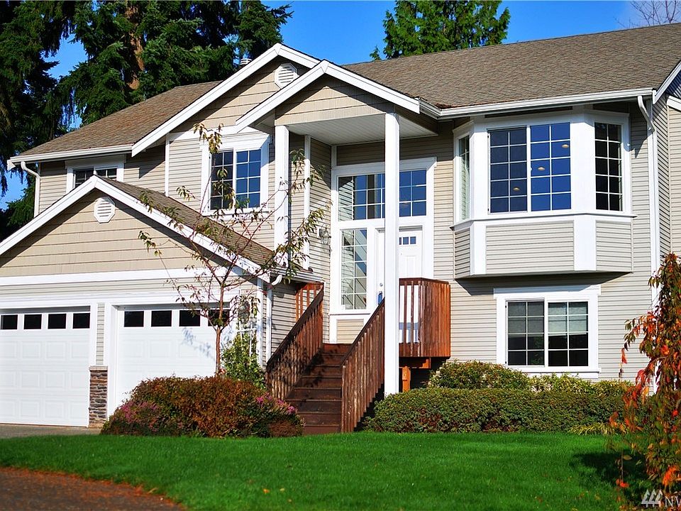 Five bedroom/three bath spit entry home with covered porch located near Silver Lake, convenient to 1-5, I-405, parks & shopping. Open floor plan includes kitchen w/ granite counter-tops, dining room, living room with fireplace & sliding door that opens onto deck. Master suite with full bath & 2 bedrooms with additional full bath on upper level. Two bedrooms, family room & utility room on lower level. Attached two car garage & room to park an RV nearby. Yard includes raised vegetable garden.