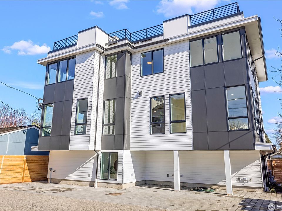The sun sets on your home search w/ this brand new West Seattle townhome by J&T Development. Western sun dances upon engineered oak floors, filling over 1328 sq ft w/ natural light. Entertain in the chef-inspired kitchen w/ gas range, stainless steel Bosch appliances, bar seating at quartz countertops, & perfectly machined custom cabinetry. Slip away to the 5-star primary bed w/ en-suite bathroom featuring a three-stream rain shower, dual sink & soft close cabinets. Enjoy heating & cooling w/ barely-there ceiling cassette mini splits. Catch sweeping bay, city & Space Needle vistas from the rooftop deck. Unmatched walkability & off-street parking leaves you steps from North Admiral's bars, restaurants, grocers & entertainment! Walkscore 92!
