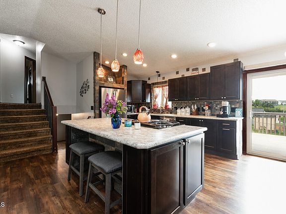 Welcome to your new home with a VIEW in SE Mandan! This wonderful home is move-in ready and has many updates! The main floor has updated vinyl plank flooring and paint. You will love the kitchen with great workspace, updated hi-def countertops, sink & plumbing fixtures. The kitchen offers high-end appliances, including the refrigerator, gas range, dishwasher & microwave! The cabinets have pullouts and soft-close doors. The large dining room accesses the deck where you will love the beautiful views to the west and gorgeous sunsets. The living room has space for all of your furniture! Step up to the upper level and you will find the hard-to-find 3 bedrooms on one level, including the master with double closets. The updated full bath is Hollywood style with a door to the master bedroom. Step down to the 3rd level and you will find a large, bright family room, an office (or a n/c bedroom), and 3/4 bath with laundry - washer & dryer included! The 4th/basement level offers a 4th conforming bedroom, the mechanical room, and a large unfinished space that could be another bedroom, workout room, office or whatever you can imagine! The mechanical room area offers the furnace, newer water heater and additional storage. You will love the heated 3-stall garage with 2 service doors, hot/cold water and epoxy floor! Need additional parking? There is a parking pad next to the garage for additional vehicles or a camper! The yard is beautifully landscaped and fenced and comes complete with a yard shed and garden area with planters (the TALL planters are not included). Don't wait - call a REALTOR to schedule a showing today!!