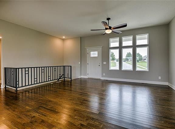 Amazing true ranch with a touch of farmhouse style! Custom made cedar shutters are so inviting! Very open floor plan with one of a kind custom made stair railing that's over the top cool, lots windows for natural daylight, granite kitchen island, beautiful custom cabinetry, hardwood floors, all make for comfortable stylish living! Master bath has classy tile, granite dble vanity, & walk in closet! Full walk out basement ready to be finished to meet your life style. Lots of extras through out!