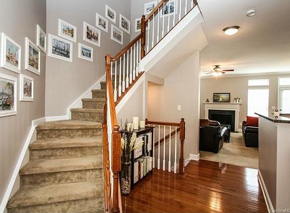 Better than NEW! This gorgeous 3BR/3.5 BA unit won't last long. High ceilings, wood floors, custom trim/molding, custom light fixtures, beautiful, bright KT w granite, tile backsplash, open great rm, fantastic dining room w built in bar for entertaining, huge BRS-each w own full bath, big closets, gas FP, tons of closet/storage space, deck for relaxing/grilling, 1 car garage...Gated community has clubhouse, pool, fitness, and easy access to light rail, Park Road, Uptown...doesn't get any better!