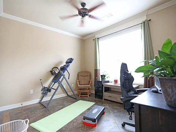 ALL BRICK, VERY OPEN FLOOR PLAN, TONS OF DETAILED TRIM, CROWN MOLDING AND CUSTOM STAINED CONCRETE. TONS OF STORAGE, HUGE PRIMARY WALK-THRU CLOSET TO LAUNDRY, GAS STOVE, SOLID GRANITE COUNTERTOPS, CORNER FIREPLACE W/ GAS LOGS, COVERED PATIO, NEWLY INSTALLED ROCK BED. PRIVACY FENCE LESS THAN A YEAR OLD. STEPS AWAY FROM A PRIVATE POND. AGENTS PLEASE SEE REMARKS