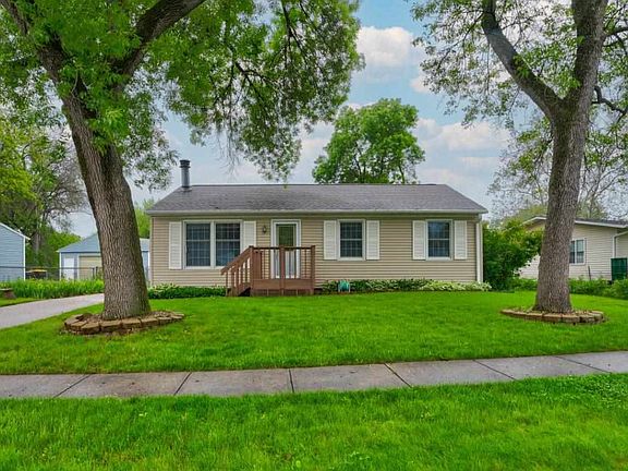 Move in ready charming 3 bedroom ranch offering cozy living space, fenced back yard, vinyl siding, patio, front deck, 1 car detached garage. Located in a quiet neighborhood, close to schools, parks, splash pad and shopping. Updated kitchen/Dr combo, Spacious living room with hardwood floors and cozy electric fireplace. Partially finished lower level features family room, utility/laundry area and block shower. Low maintenance vinyl siding and newer windows. Water Softener is owned and will convey with the home.