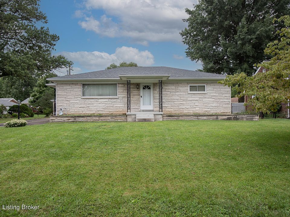 Nestled in the desirable city of Forest Hills in Jeffersontown, this beautiful Bedford stone ranch welcomes a new owner. Conveniently located near restaurants, shopping, and I-64, this move-in ready home is just minutes away from all Louisville has to offer. Boasting hardwood floors throughout the majority of the first floor, an attached sunroom, partially finished basement and a two and a half car garage, this home is an absolute must see for anyone looking to live in the J-Town area. The first floor features two large bedrooms, a full bath with tile flooring, ample closet space, oversize formal dining room, expansive kitchen and sunroom. Don't forget to check out the spacious finished basement with multiple bonus rooms that could be additional living space or an office, and the basement is rounded off with a full bath/utility room/laundry room combination. The large 2.5 car garage has space for a workbench and two cars while the fully fenced backyard offers green space to enjoy the outdoors. Schedule your showing today and don't miss out on this unique opportunity.