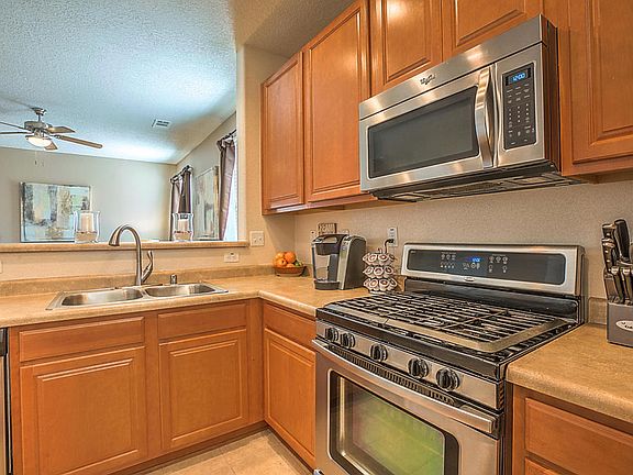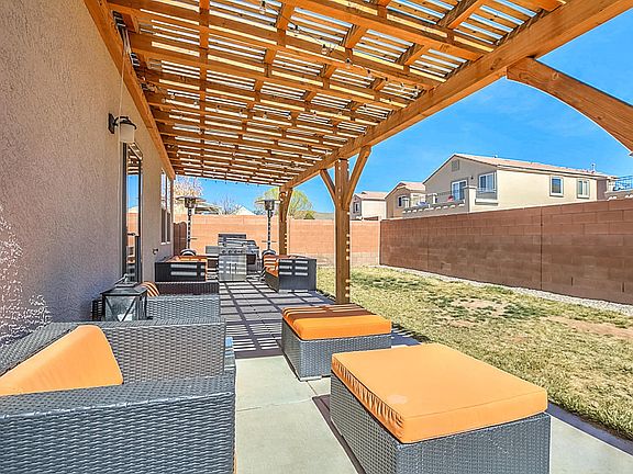 In the heart of Cabezon this delightful 8 yr. old Centex home in the Toscana Community features 1445 sq ft of open living space. The open concept layout centers the kitchen as the heart of the home with stainless steel appliances, an island,upgraded cabinets, tile floors and a walk in pantry. This 3 bedroom and 2 bath home is perfect for any family.It also includes an office with glass french doors that provide a quiet space to relax. Walk out the back door into a fully landscaped covered patio, perfect for entertaining! Less than 5 minutes away this community is next to ''A Park Above'' - a state of the art park for children of all ages.