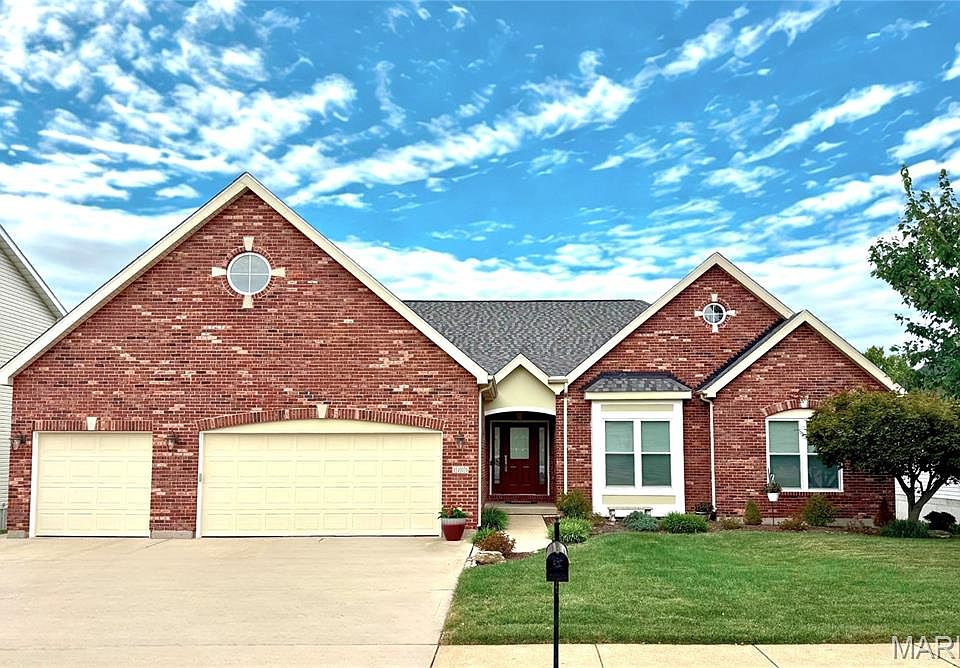Welcome to this meticulous atrium ranch in the highly sought-after, luxury neighborhood of Fenway Farms in the award-winning Rockwood School District. This popular atrium ranch floor plan with 4 bed & 3.5 baths that seamlessly blends elegance with functionality. Step inside and be captivated by the soaring vaulted ceilings and an open floor plan that fills the space w/ natural light. The vaulted great rm is the heart of the home, complete with a cozy gas fireplace & custom arched built-in bookcases & niches. Formal dining rm makes a statement with its elegant coffered ceilings, crown molding & column details. A bright breakfast room invites you, w/ a seamless transition to the composite deck that features steps down to the spacious backyard and patio. The kitchen is a chef's delight, offering 42" cabinetry, a convenient walk-in pantry, a planning desk, and breakfast bar. Retreat to the main floor primary suite, with a generous walk-in closet and a spa-like ensuite. French drs lead to a luxurious bath featuring an adult height dual vanity, a separate shower & jetted tub. A large utility rm, powder rm 2 additional bedrms & hall bath complete the main flr. Fin. lower lvl provides a rec rm featuring its own fireplace and a walk-out to the patio, plus a 4th bedrm, a full hall bath, and tons of storage space. Additional features include a 3 car garage, new roof in '24, HVAC and water heater in '21, & washer/dryer stay. Don't miss the chance to experience this exceptional property!