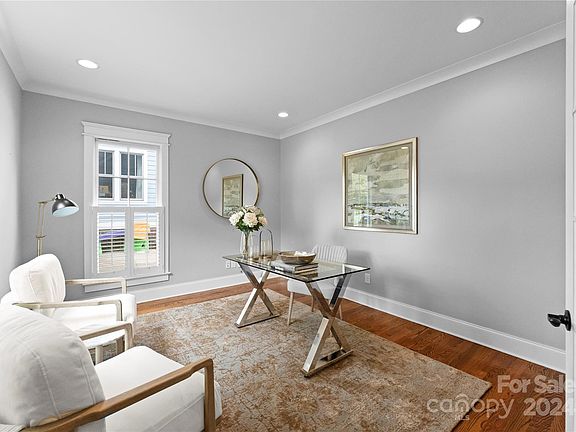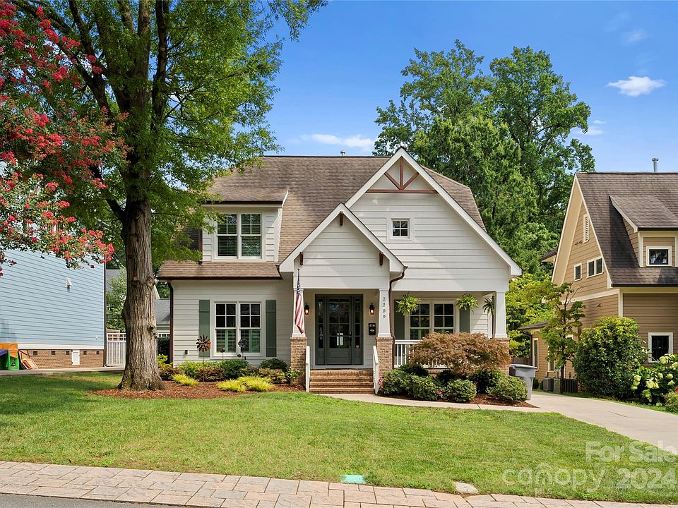 Traditional 2 story home built in 2012 in the heart of Dilworth. High ceilings, beautiful moldings, and hardwoods throughout main. Rocking chair front porch, Bright center foyer, office w/french doors, formal dining w/wainscoting, Butler's pantry w/wine fridge, granite counters, glass display cabinets, walk-in pantry & drop zone. Great room w/gas FP, & built-ins that adjoins a gorgeous kitchen and eat-in breakfast area. Laundry room w/sink and storage cabinets. Primary suite is located on the main level and has his and her walk-in closets. The bathroom features a soaking tub, large vanity with two sinks, & standing tile shower. The upper level has three bedrooms, each with walk-in closets & bathroom access, as well as a large bonus room. Gorgeous covered porch and 2nd outdoor living space with wood burning stone FP is the perfect space for entertaining outdoors. 2-car detached garage & private drive. Convenient to retail, Freedom Park, hospitals, & Uptown.