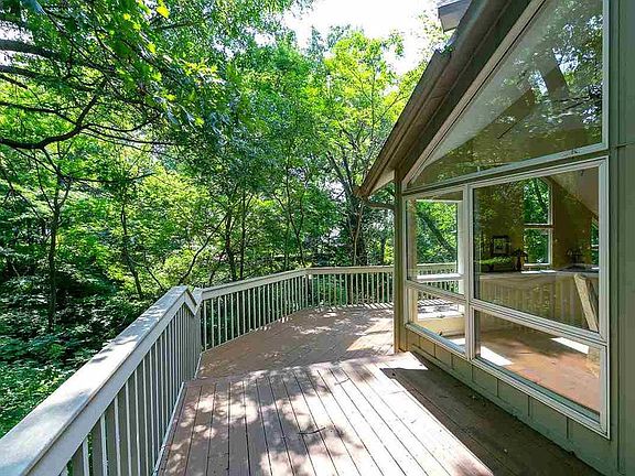 One-of-a-kind custom built 4 bedroom, 4 bath home designed for local artist and perfectly placed on a serene wooded lot in east Davenport. 2-story foyer greets you into this contemporary masterpiece. Tall vaulted ceilings in the living and dining room with towering windows perfect for entertaining complete with a wet bar, wood burning fireplace and access to the large two-tiered deck. Gourmet kitchen with quartz counters, Sub-Zero refrigerator, Dacor gas cooktop, double ovens, wine fridge, and both formal and informal dining areas. Main level laundry with pantry. The family room has two french doors and is a great place to unwind. Master suite has a bathroom with jetted tub, shower and walk-in closet. Other upper level bedroom also has a walk-in closet. Walkout basement has a 3/4 bathroom and access to garage and backyard. Fenced backyard is surrounded by trees, a hosta garden and is perfect for deer watching. Beautiful views of the wooded lot from every room! Truly a must see home!