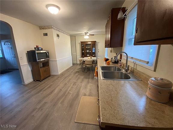 Located at 2209 Gridley Ave NW, this 3-bedroom, 1-bath ranch is nestled within two blocks of two schools and is ready for a new family. Upon entering, you'll discover a spacious living room with LVT flooring. The large eat-in kitchen offers washer/electric dryer hookups and backyard access. The home also features three nice sized bedrooms and an updated full bathroom. The large yard includes a 10 x 12 shed and is enclosed by chain-link fencing, providing an ideal spot to witness stunning sunsets. The raised position of the property gives a perfect view of the Crenshaw Jr High football field and track. Recent updates include a new interior door with built-in blinds and a storm door at the side entrance, kitchen faucet and light fixtures replaced in October 2024, LVT flooring in the living room, kitchen, and hallway installed in October 2023. The furnace and air conditioner are approximately five years old. Utilities are serviced by AEP, Dominion/Enbridge-Gas, and the City of Canton for Water/Sewer/Trash.