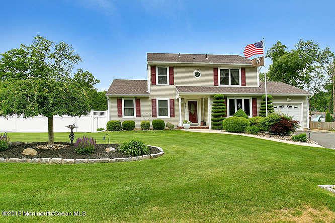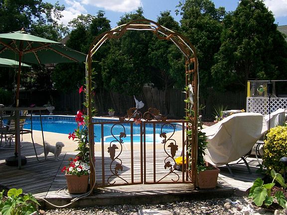 Dreaming of the perfect backyard oasis? Then this stately colonial in Holly Oakes is the one that you've been waiting for! Heated inground grecian-style pool(18x38) w/attached hot tub allows enjoyment through the fall! Boasting hardwood flooring throughout, 4 bedrooms (master bedroom & 2nd bedroom offer walk-in closets),1.5 updated baths including Kohler air tub & separate stall w/rain shower,1 car garage,formal living & dining rooms, family room w/wood burning stove, separate study, eat-in kitchen with full appliance package, central air, gas heat, vinyl siding, underground sprinklers, double-wide 5/6 car driveway,2 tier deck 3 storage sheds, full finished basement including a workshop/exercise or play area/under stair storage/ & entertainment room with 16'' tile & ventless gas fireplac