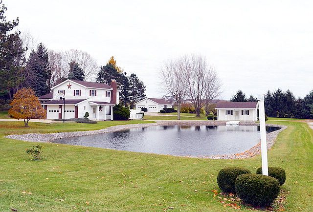 There's nothing quite as soothing as a water's edge setting! Here's a fun and relaxing place to live and entertain with a little bit of everything; beautiful home with 2-car attached garage, pond with dock and lake house, and a huge 2-car detached garage (24 x 30!) with heat and a/c for the mechanic at heart! Other fine features: front and side covered porches, Andersen windows, double wide concrete driveway and walk to lake-house, patio with vinyl fence. Forced air electric furnace with C/A heat pump, electronic filter and humidifier. Time Warner cable available.