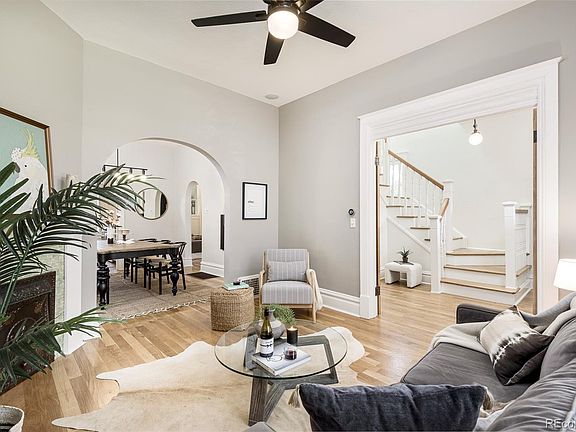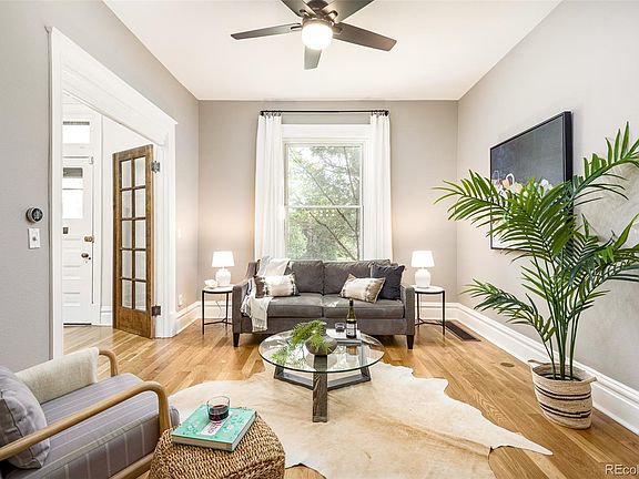 Chic 3-bed, 2-bath Victorian home in the Highlands. 5 blocks from Sloans Lake, it features immaculate oak floors, tall ceilings, grand windows, and an updated kitchen. With a living room, family room, and formal dining room, there's plenty of space for comfortable living and entertaining. Main floor 3/4 bathroom features designer wallpaper from Walltawk. Retreat upstairs to three bedrooms and a full bath. Enjoy the quaint private backyard on a quiet, tree-lined street. Restaurants and shopping are close by on Tennyson or Highland's Square. Experience the perfect blend of historic character and modern convenience.
