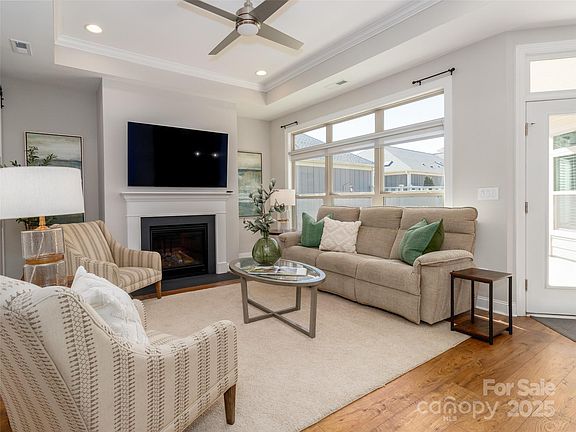 For those who love natural light and the outdoors, this coveted Palazzo Plus floor plan features a bright, airy sunroom for your "extra space". Upon entry, you feel the difference- White Modern finishes, from cabinetry, sliding barn doors, stylish light fixtures, recessed lights, and more! The quartz countertops and oversized island with a breakfast bar make the kitchen both functional and beautiful. The primary suite offers direct access to the screened porch. The en-suite bathroom features wrap around shiplap walls and a zero-entry shower. The built-in closets seal the deal. Get fresh air on your oversized front porch, or side patio and invite your new friends over. This home feels BRAND NEW and has been well loved. This 80/20 55+ community offers a welcoming atmosphere with regular events, scenic walking trails, and a strong sense of community. Conveniently located just 1.7 miles from top retailers and grocery stores, and close to downtown Waxhaw & Monroe.