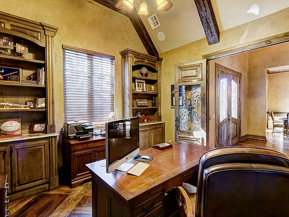 Impeccable elegance exists in this well appointed home with custom amenities throughout.From the moment you enter the beautiful wood floors & staircase catch your eye leading you into the grand kitchen & living room.The kitchen is a chef's dream with commercial appliances,hickory cabinets,spice racks,built in hutch in dining area,island seating,walk in pantry & motorized shades.Shades are also present in the living room which opens up to a large screened in porch with fireplace and 18 person hot tub.Master bedroom features a fireplace, gorgeous ceiling and a master bath and closet fit for a queen.The secondary bedroom downstairs features easy access from the side entry & a wonderful closet.All bedrooms are en suite.The bonus room upstairs has a wet bar,balcony overlooking the backyard & powder bath which is also easily accessed from the theater room.The guest house has a bedroom,bathroom,kitchen and washer/dryer connection and is easily accessible from the pool and hot tub. Please contact listing agent for showings Jennifer Fields Churchill Brown & Associates 405-412-2273
