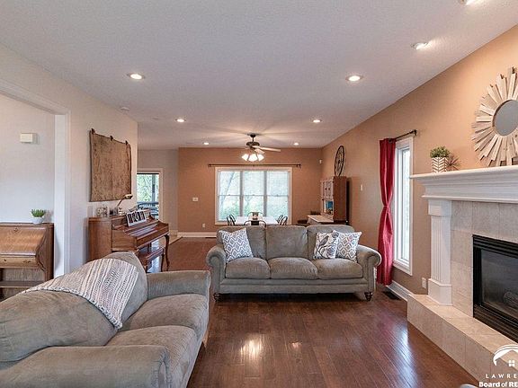 A must-see in Eudora's Meadowlark subdivision! Sitting on 1/2 acre, this beautiful home is nestled in the tree's with tons of windows and natural light. New carpet throughout, gorgeous flooring and a back porch you'll never want to leave. Master suite is a retreat including gas fireplace and sitting area. Huge open layout kitchen overlooking a park-like backyard, adorable storage shed and outdoor living areas. Finished basement has 4th bedroom, full bath and recreation space with brand-new laminate floors.