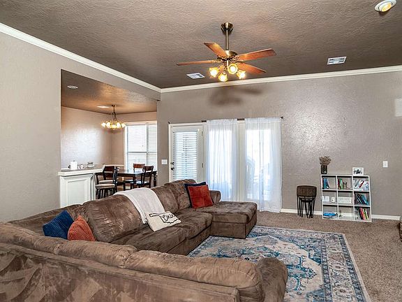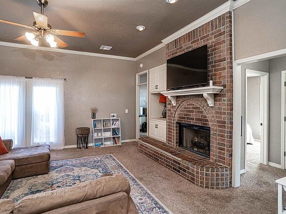 Delightful! Charming! Well cared for brick home in the popular Eastridge Neighborhood! Great opportunity for investors, first time home buyers and parents wanting a comfortable home for their college age students! The home’s attractive curb appeal features three brick gables on the front of the house, an arched entrance to the front porch and transom front door, beautiful light fixtures on the garage, new exterior paint and a NEW ROOF with impact resistant composite shingles. The living room features an open floor plan with high ceilings trimmed with crown molding, ceiling fan and light fixture. The focal point is the brick fireplace with a hearth, custom mantel, built in shelving, cabinets and spot lights. French doors open to a spacious porch with lots of room for grilling out and entertaining friends and family in a spacious backyard with privacy fence. The kitchen has an eat-at bar, white cabinets, tile backsplash, and stainless steel appliances. A lovely chandelier enhances the dining room, Large windows frame the beautiful view of the backyard. The generous main bedroom suite has a high ceiling, door to the back patio, large windows and oversized custom walk-in closet. The ensuite bathroom features a long vanity with large mirror, extra cabinet space under the vanity, storage behind the mirrored corner cabinets and a soaking tub with shower. The two additional bedrooms are spacious with nice size closets. There is a hall bathroom with a tub/shower combination and storage cabinet above the toilet. There is also a large storage closet in the hallway and coat closet at the entrance. The utility room is just off the kitchen and features a floor-to-ceiling wall of storage cabinets. The yard is landscaped with a blooming tree, mature shrubs and an abundance of cheerful flowers celebrate Spring’s arrival. There is a storage building in the backyard with double doors for easy access. The oversized two car garage has built in cabinets and room for extra storage. Just minutes from the OSU Campus, Boomer Lake hiking and biking trails, popular shopping and favorite restaurants. Put this beautiful home at the top of your “MUST SEE” list!!