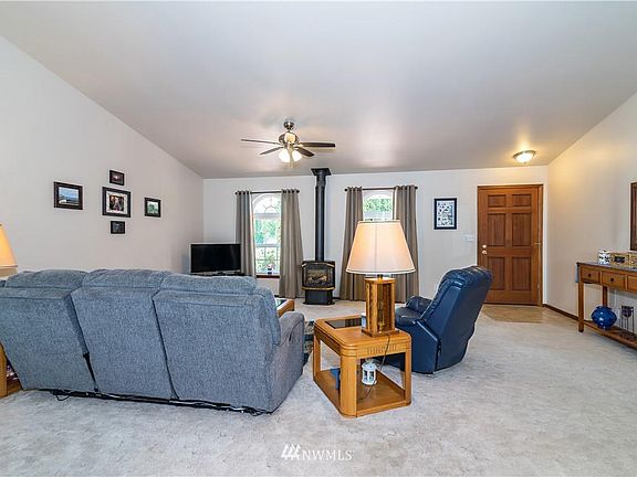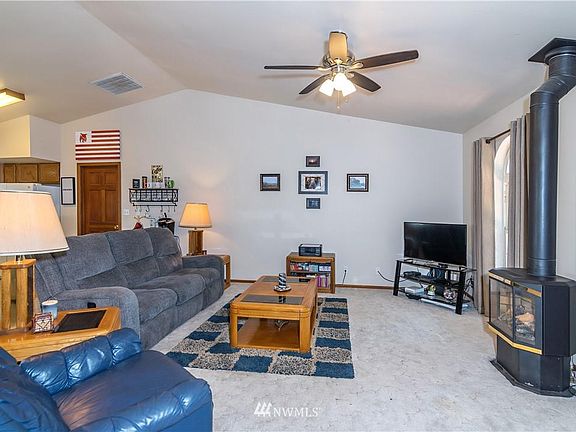 Back on market due to buyer - no inspection completed! Centrally located, this 3 bedroom 2 bath home has vaulted ceilings and an open floor plan with 1,608 sq. ft. of living space. A free-standing stove for the winter and a heat pump (A/C) for the summer will keep you comfortable all year. Sliding glass doors open to the fenced backyard. Spare rooms are large and the master bedroom has a walk-in closet & bath with double sinks, walk-in shower with a jetted tub. This quality built home has solid wood doors throughout. Double car garage with extra space for workbench & storage.