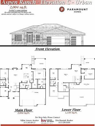 The Aspen is a modern RANCH floor plan in a brand new Grimes neighborhood Chevalia Valley II. This large lot features a pond directly behind the home! The surrounding mature trees, new fitness trail encompass the neighborhood and live less than a mile from the new elementary school. Ranch & 2-story plans starting at $285,000. The ASPEN ranch boasts open concept living with modern/transitional finishes. The split bedroom floor plan provides a total of 3 bedrooms on the main lvl - 2 bedrms share a full bath and the master features a luxurious spa bath & walk-in closet. Spacious family rm open to the kitchen with walk-in pantry, hardwood flooring, iron railing, quartz surfaces, master spa bath with tiled shower, covered deck, drop zone with lockers. Tons of finishable space in the lower level add a 4th & 5th bedroom, bath and family rm w/ wet bar. Customize this home for your specific needs! Call for more info today!