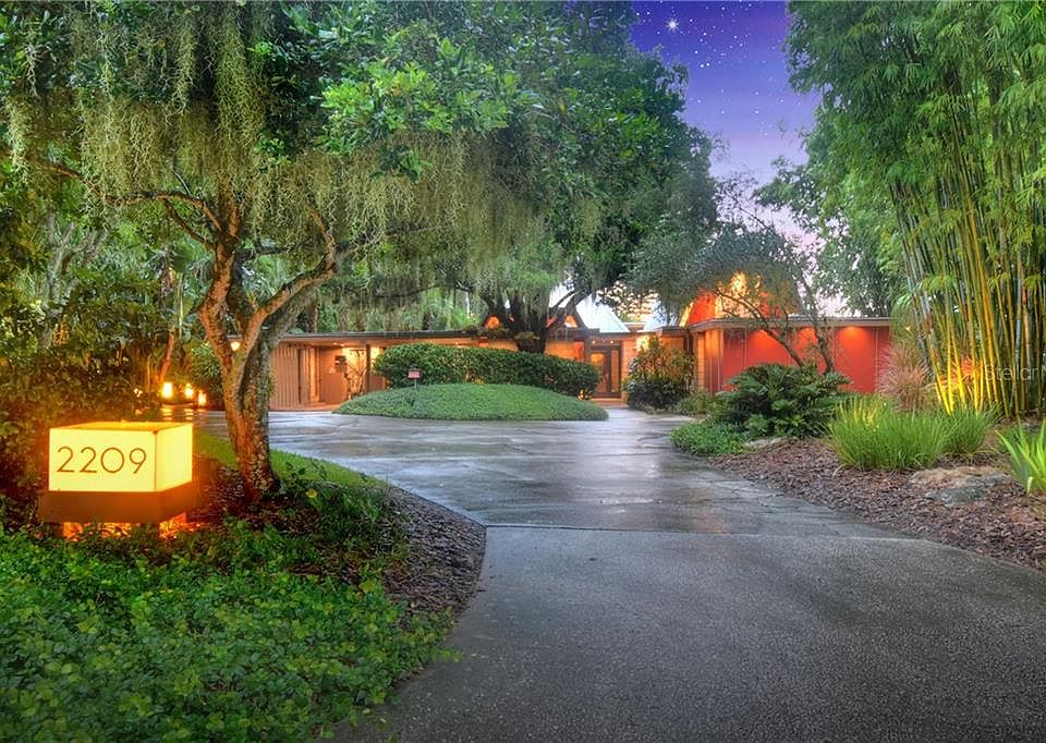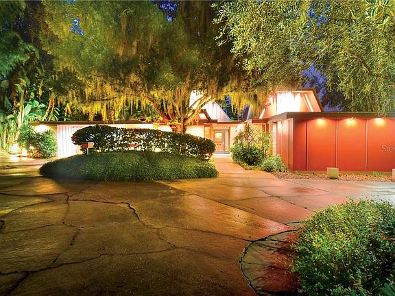 Welcome to The Spencer House, designed by architect J Bruce Spencer, well know for his mid century modern designs strongly influenced by Frank Lloyd Wright. With almost 3700 sq feet of living area and over 4800 sq feet under roof this 4 or 5 bedroom 4.5 bath pool (heated and salt water) home sits on a half acre lot 2 houses up from Lake Hollingsworth and includes a separate parcel - .02 of an acre with approx 15 ft of riparian rights on the lake. This home is the perfect blending of mid century modern architecture and the features that today's buyer is looking for! Since purchase in 2009 many upgrades and improvements have been made, several with the design assistance of J Bruce Spencer - redesigned kitchen, master bedroom 17x10 closet addition and recently updated master bath, 20x17 "cube" screen room with dramatic high ceiling,extensive gutter system with aquaduct water feature, natural gas line brought to the house, all new 24x24 porcelain tile flooring, new landscaping designed by Julian Simon, new roof, HVAC systems (3), electric updated to 400 amp service and much more. This home works well for everyday living with a 3 way split bedroom plan (the 5th bedroom has its own bath and can be used for guests or as an office), formal and informal areas and multiple outdoor living ares and for entertaining with its dramatic great room with 20 foot soaring ceiling, butlers pantry with 2nd dishwasher and icemaker and plus a separate dry bar. The main construction material is Ocala block with redwood exposed beams and trim. The 2 bonnet style roofs over the great room (20 ft ceiling height with skylights) and living/dining room (16 ft ceiling height) allow for extra light with vertical skylights in each bonnet. The great room features a series of Anderson Architectural Series doors leading out to an extensive patio and pool area with custom light cubes that enhance the spectacular landscaping. The living/dining room has 2 "engawas" - Japanese for veranda - which are screened and let in the light and breezes. A fireplace adds drama to this area. The reconfigured kitchen features custom bamboo cabinets with lots of pullouts including a popup for a mixer, high end appliances (Bosch builtin refrigerator, Thermodor double oven, Advantium convection microwave, gas cooktop with pot filler and GE Monogram dishwasher), solid surface counters and updated lighting. The kitchen is open to a breakfast and and family room and there is access to the screened "cube" through Anderson Architectural Series doors. From the screen room there are more views of the lush landscaping. Other improvements include full house water softener, security system with monitered cameras, gas line supplying gas to cooktop, 2 tankless water heaters, pool heater as well as hookups for generator and gas logs for fireplace and the list goes on (details are available.) This home is the prefect blend of mid century architecture brought up to the 21st century without sacrificing the integrity of the original design!!