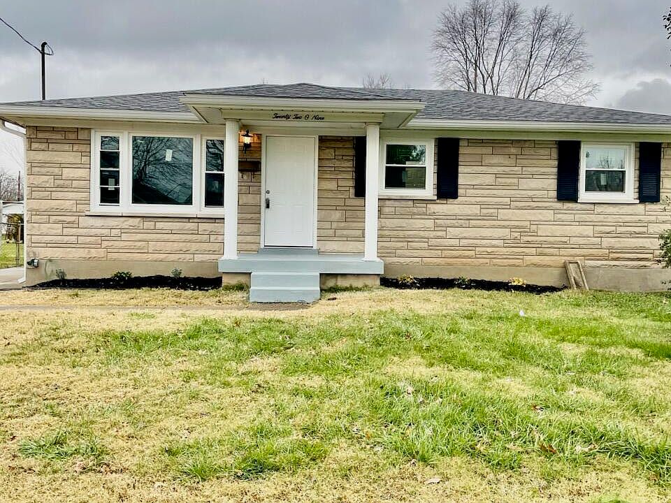 As you arrive, the covered front porch keeps you out of the elements that Kentucky is so prone to. Step inside to discover new flooring complemented by a unique new accent wall and updated lighting fixtures; setting the stage for a warm and stylish living experience. The home's new windows bathe each of the four spacious bedrooms in natural light, while new carpeting adds a cozy touch underfoot. The heart of the home: the kitchen, gleams with new stainless steel appliances, pristine countertops, and newly installed cabinets, all awaiting your culinary adventures. The two full bathrooms have been tastefully updated to provide comfort and function for all.