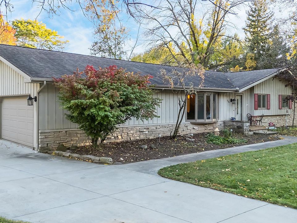 Discover this charming 4-bedroom, 3-bath ranch home, nestled in a picturesque park-like setting on a spacious half-acre lot, surrounded by lush trees. The exterior boasts a brand-new deck, recently completed and accessible from both the master bedroom and kitchen—ideal for entertaining or simply unwinding in nature. Step inside to find a beautifully updated kitchen and master bath, with appliances that are less than a year old, alongside a new water heater. The open-concept layout flows effortlessly into the cozy living area, where a stunning fireplace serves as the centerpiece, creating a warm and inviting atmosphere. The finished basement adds even more appeal, featuring a stylish bar and a pool table, perfect for hosting gatherings or enjoying a game night. Large windows throughout!