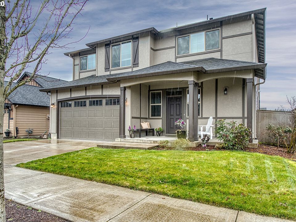HUGE bedrooms in this home! Gently lived in that feels like new. Need a great kitchen? Granite countertops, stainless steel appliances, gas range, center island, plus a pantry. Dining area & seating at eating bar make the kitchen "THE gathering area". Easy care, beautiful flooring, gas fireplace, & formal foyer are welcoming & inviting. All bedrooms & laundry upstairs, no up & down on laundry day. Think summer BBQs on the covered patio, & watch your dog (& humans)play in the easy care yard!