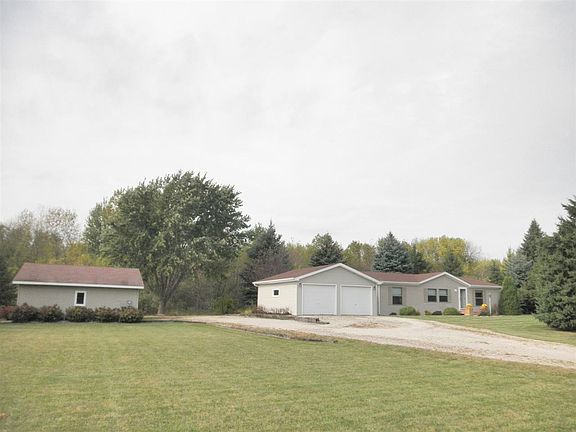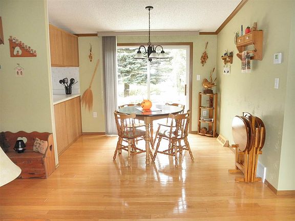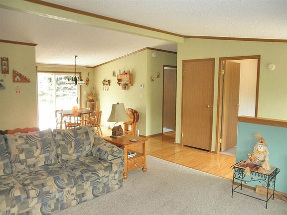 This nicely maintained country home has many updates: windows, furnace, central air, hardwood flooring, roof. Enjoy the dinette patio door leading to your own tranquil, wood view deck, and gardens. The open concept kitchen, dining and living room is great for entertaining. The master bedroom suite has a walk in closet, updated sink, tub/shower unit with whirlpool jets, ceramic tile floor, and linen closet. The full basement has partial finishing, kitchen area, workshop, plumbed for a future bathroom. Two garages give plenty of storage or shop space. Call for your showing today!