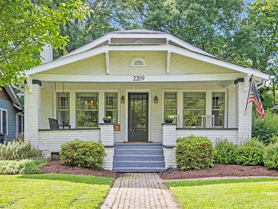Midwood charmer at 2209 The Plaza! This 3 bed, 2 bath home has a fabulous floor plan and is full of charm, with tall ceilings, hardwood floors, open spaces, and a rocking chair front porch. Updated kitchen off the living room features subway tile, ss appliances and farm sink. Natural light abounds throughout the open floor plan which is perfect for entertaining. Window-lined den features a gas fireplace flanked by custom built-ins and leads into the private backyard. Enjoy time outdoors in the lush backyard and under the beautiful pergola. Finished back house is a wonderful flex space- perfect for an office, bonus room, workshop or playhouse . Short walk to all that Midwood, Belmont and Villa Heights have to offer!
