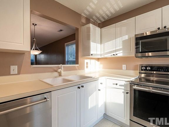 Quaint 2 bedroom, 2.5 bathroom townhome in Raleigh! Entering into this home you will find a cute kitchen with a slight-lines into the dining room. This floorplan creates an easy flow through the living room, featuring a gas fireplace out to the patio and fenced-in backyard. Head upstairs to find both the guest bedroom and the primary bedroom with cathedral ceiling, walk-in closet and en suite bathroom. Great location, with easy access to major roadways for an easy commute to downtown and the RDU Airport!