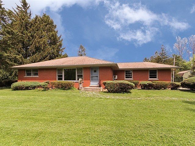 Solid brick ranch on sylvan 4.9 acre estate. Equestrian center approx. 100 yds. away. Set on very quiet lane. Pastoral lot w/many evergreen and deciduous groves.Fresh NEUTRAL interior PAINT THRU OUT.Hardwood FLOORS FRESHLY REFINISHED.High pitched roof replaced in 04.Outbuilding w/pulldown stairs.New in past 4 years:well pump,pressure tank,backup sump,range,fridge.Taxes will be lower:currently no homestead exemption.