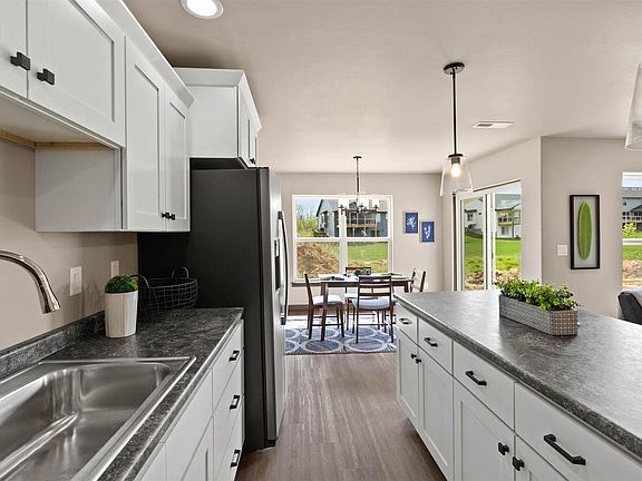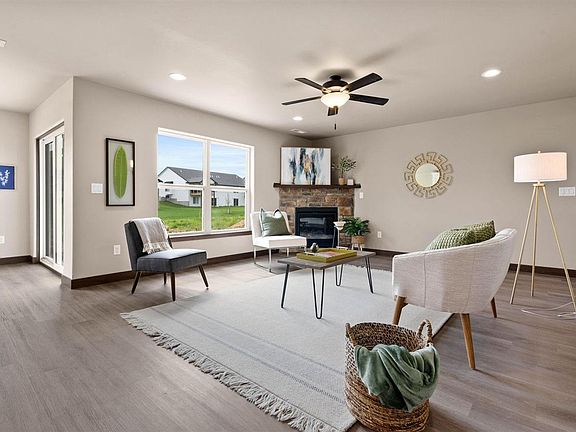 $10,000 CLOSING CREDIT to buyer at closing!! Discover the best of both worlds in this radiant 2-story zero-lot home featuring 3 bedrooms and 3 bathrooms. Embrace the beauty of nature and breathtaking vista views that surround this inviting residence. The main floor boasts an inviting living room adorned with a gas fireplace and a stone surround, creating a cozy atmosphere for relaxation. The kitchen is a chef's delight, showcasing white cabinetry, solid surface countertops, an island, and stainless steel appliances. The adjacent dining area seamlessly leads to the outdoor patio. Convenience is key with a half bathroom off the 2-car attached garage. LVP flooring flows throughout the main level, adding both style and durability. Upstairs, you'll find three bedrooms, a laundry room, and a versatile storage room or den. The primary bedroom impresses with a cathedral ceiling, a spacious walk-in closet, and a primary bathroom featuring double sinks and a shower. Located in the highly desirable new development, Kalona SouthTown Area, this home offers proximity to nature trails, a golf course, ponds, a beach, parks, and more. Live in a community that harmoniously blends modern living with the serenity of nature. Your dream home awaits!