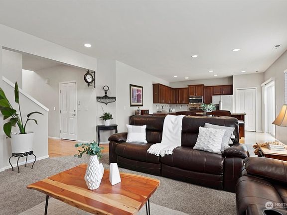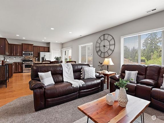 This spacious, well-maintained home sits on a gorgeous lot and boasts recent upgrades like new carpet, fresh paint, and LVP flooring. Convenience is key with main floor bed and 3/4 bath, while the upper floor offers a luxurious primary suite with a 5-piece bath & walk-in closet, plus three more bedrooms, full bath, & utility room. Lower level offers a bonus room & full bath, making it ideal for multi-generational living. Plenty of WFH space! Enjoy entertaining in the fully fenced yard with lower patio & deck. Many possibilities with additional 15X18 unfinished space in lower level. Don't miss the concrete pad & custom swing gate for trailer/boat parking! Close to shopping, dining, parks, trails, and Mill Creek Town Center. Welcome Home!