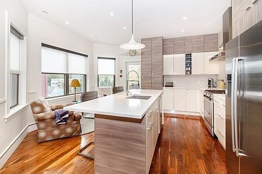 5-year young new construction PH in JP's Bourne neighborhood. OVER 1700 sq. ft, 3 bed/2 bath! Natural light drenches this modern home & warm walnut flooring adds style & character. Open concept living room from front to back w/ high ceilings & recessed lighting throughout. Living area w/ gas fireplace leads to a gracious dining area & European styled kitchen. Kitchen highlights include Caesarstone countertops, Bosch appliances, gas cooking, sleek vented hood, & large island. Design Within Reach kitchen lights and Hubbardton Forge sconces in the dining room. Generous master suite w/ spa-like shower, double vanity & large walk-in closet. Custom blinds & surround sound. Central a/c, Harvey windows, James Hardy siding. Full private staircase, hydraulic hatch, roof rights w/ architectural plans. Two private mahogany decks plus lg. private portion of the yard perfect for gardening. Private lockable storage. Off-street parking for 1 car & no street permit required for additional vehicles.