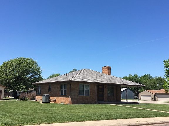 Location-Location-Location! Close to Great Bend, Ellinwood & Hoisington. 4 bedrooms(1-non conf.), 1.75 baths. Beautiful, well taken care of, brick-ranch style home. Low maintenance. Newer windows. Original wood floors. Lots of built-in cabinets w/tons of storage. Utility on the main floor-in breezeway. Situated on a HUGE corner lot & includes a 24'x24' garage/workshop!